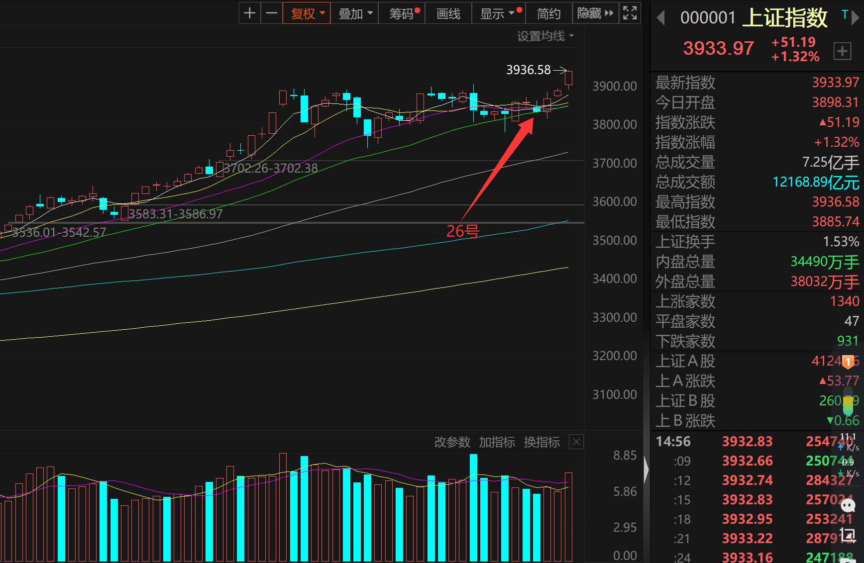 26号回踩30日线开始反弹,昨日突破3900点,完全符合预期