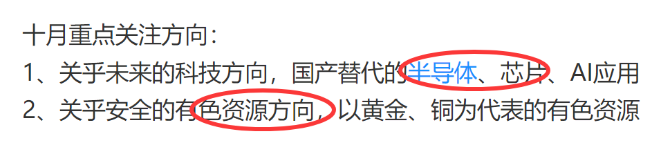 昨天早评指出十月重点方向是半导体、芯片和有色资源