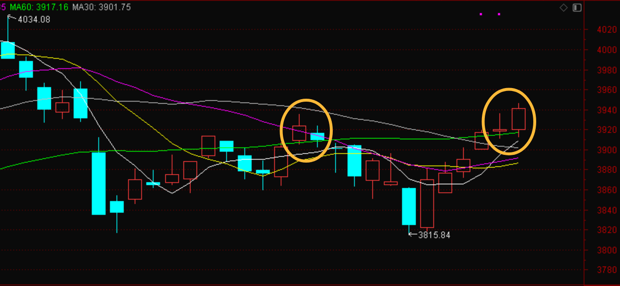 今天的情况刚好反过来,中阳反包,很威猛,说明市场信心比较足,否则不会选择在年末这个节点往上顶,正常情况下,年末震荡几天,躲过流动性压力,元旦后再进攻也是可以的。