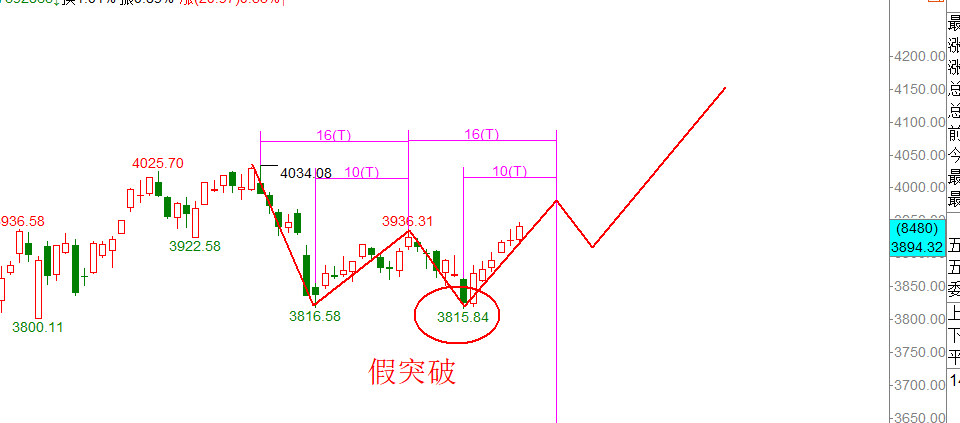 1、3815破了3816只有一个点,然后反弹,如果3815结束了调整,这里只有一个结构,就是假突破反转价格形态,可以参考09年9月1号的走势,这种结构是专门杀技术派的,就和诱多的双头结构类似,都以为突破是买点,然后开始调整,诱空结构反过来就行,都以为破新低会继续下跌,需要止损或者做空,但是主力直接反包拉升。