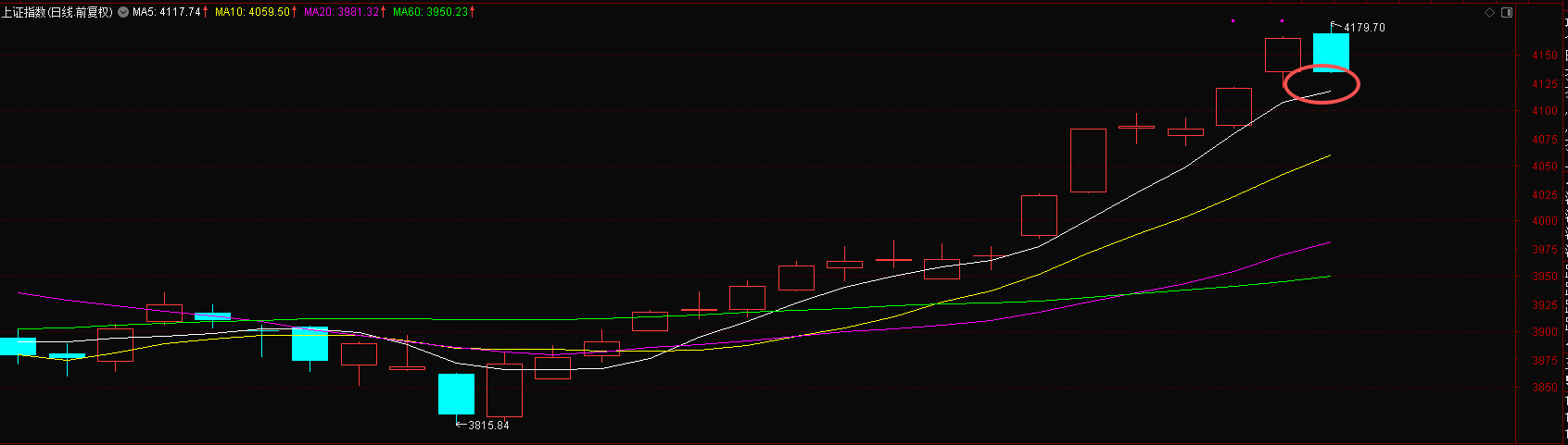 尾盘指数继续回落,不过整体上涨趋势没坏,刚才后台有老板很担心接下来的行情,是不是见顶了?先说结论,这里估计不是顶,17连阳后有调整很正常。而且大家注意看大盘的5日线,现在都还在5日线之上,说明市场抛压并不高,砸到5日线附近,资金反而砸不动了。