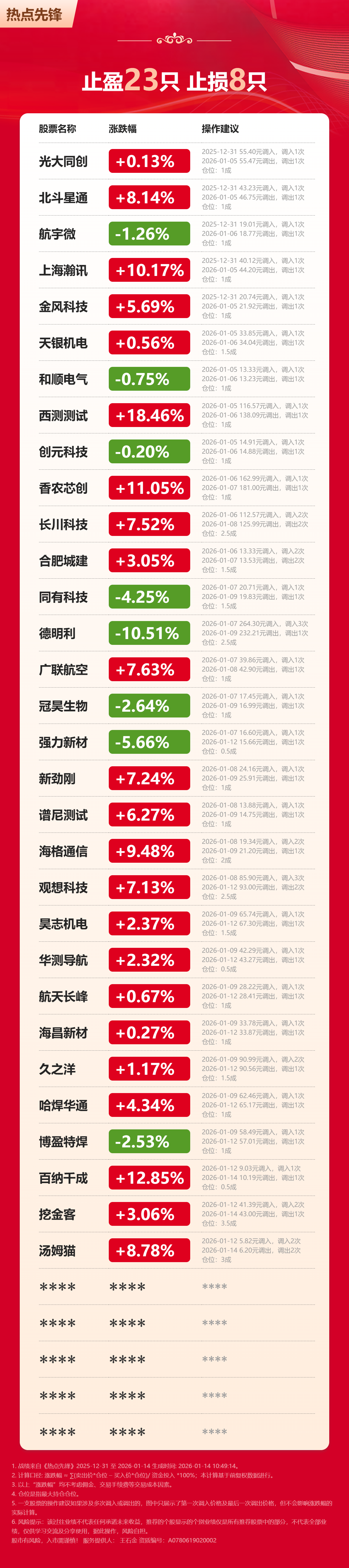 最新战绩出炉,31只策略23只获利,8只止损,基本都是1-3天操作完毕!
