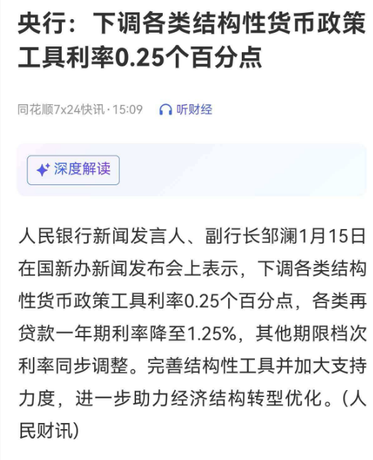 盘后利好来了!这次央行把结构性货币政策工具利率降了0.25个百分点,一年期再贷款利率降到1.25%,说白了就是给科创、绿色产业、小微企业这些国家重点支持的领域“减息放贷”,不是全面降息,是精准给需要的行业送钱。这两天给市场降温后,领导马上开始安抚市场,司马昭之心路人皆知,老乡们,牛在路上,别灰心!