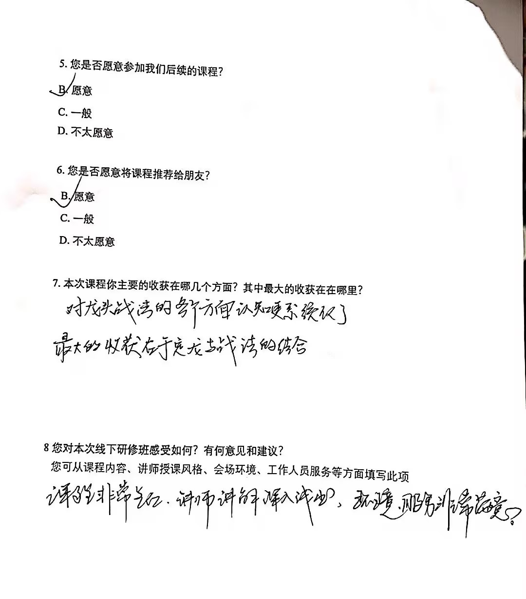 您给我们提了很好的建议,我们非常重视课程质量的打磨,有专门的团队进行课程的研发和更新升级,案例也尽量与时俱进。也希望您有时间去参加复课,相信会有新的收获。