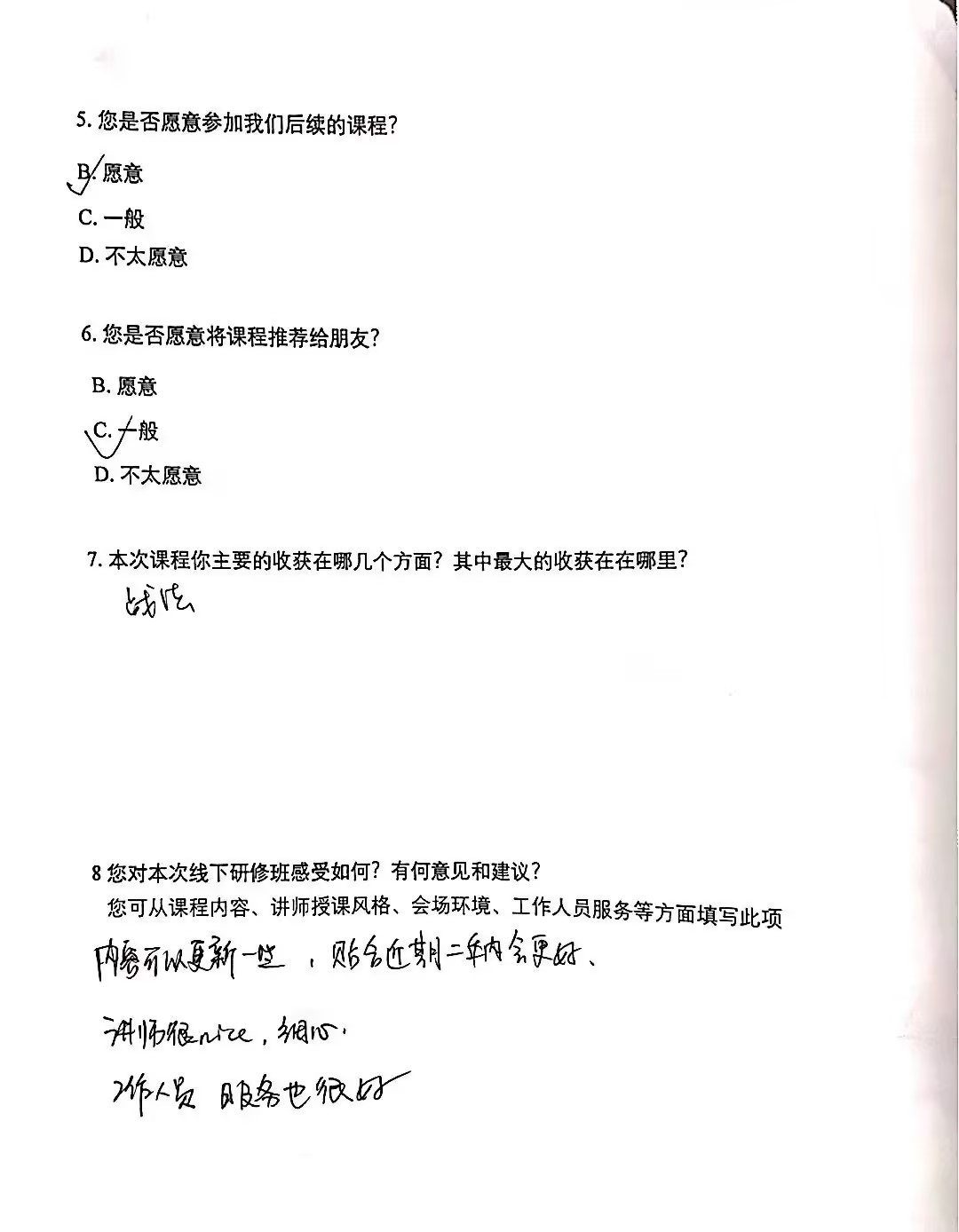 经过两天的培训,大家收获满满,对老师讲授和课程内容的质量都给予了很高的评价,这是部分学员反馈:
