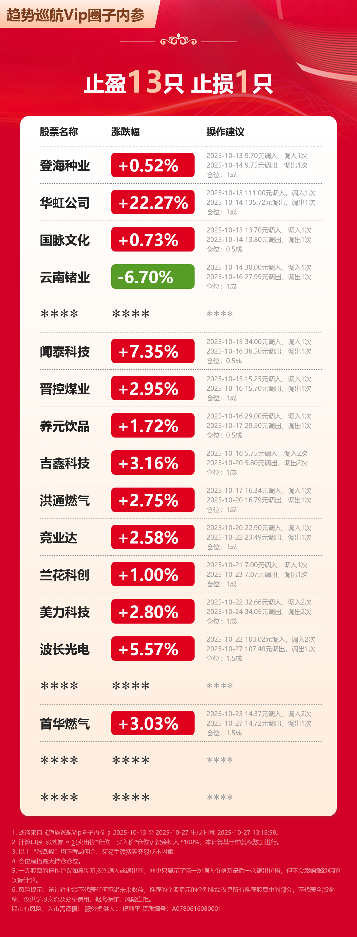 对大盘来说,这两天问题不大,因为市场有一种期待,但这两天过后就看消息面吧,我们要说的是,大盘上涨,你的股票没有上涨,难道大盘下跌,你的股票就一定会下跌吗?所以,还是重个股.吧,请注意关注趋势巡航。