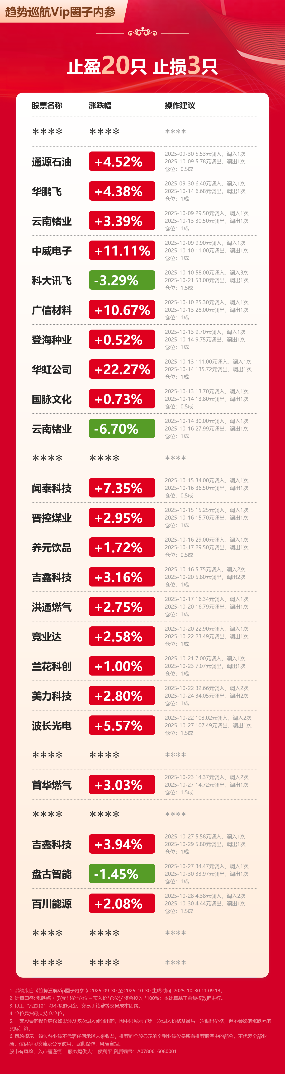 最近一个月VIP内参业绩如下: