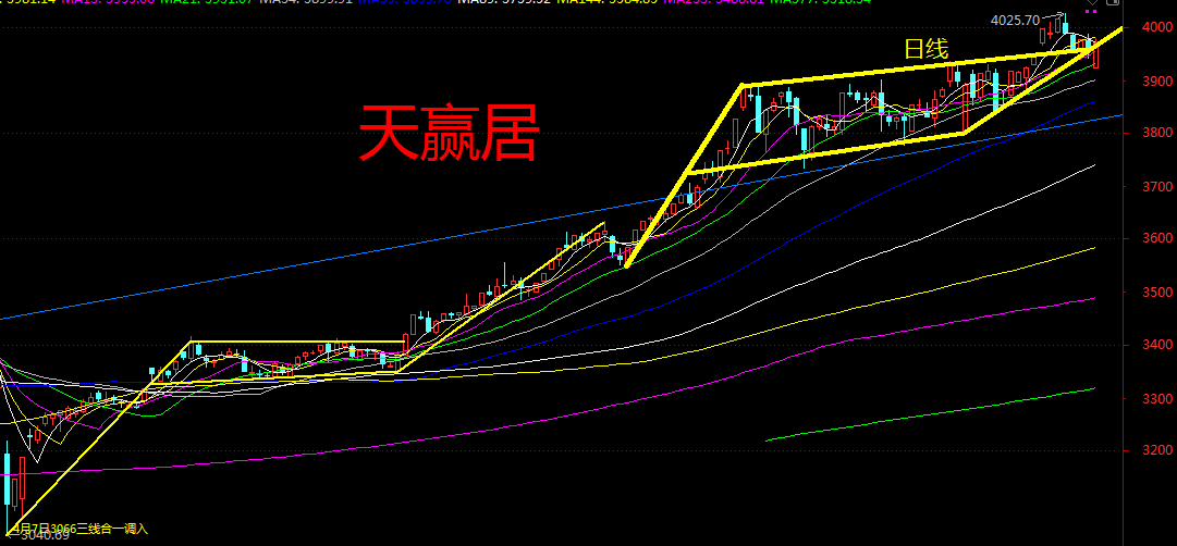 大盘已越过牛市下降压力线6124(20071016)—5178(20150612)并指向慢牛紫色趋势线1558(19930216)—2245(20010614)—3067所在4230一带。但是前几天到了2020年发表的《黄金分割是大自然的基本规律》中给出的4018黄金目标位进入小级别洗盘。