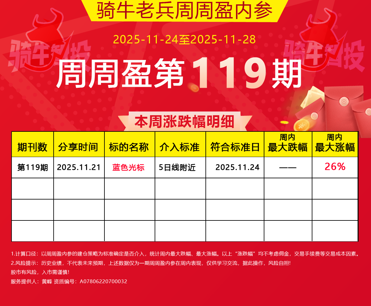 以上是骑牛投研11月份的周周盈产品盈亏情况!风险提示:历史业绩,不代表未来预期,上述数据仅为一个月周周盈内参的表现,仅供学习交流,据此操作,风险自担!
