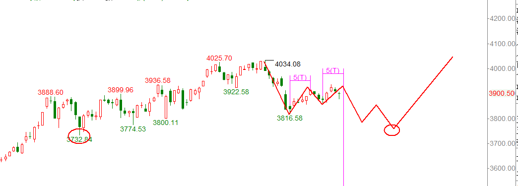 3816并不是支撑位上,所以还是偏向这里是B浪反弹。