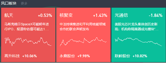 2、板块概念方面,可控核聚变、次新股、商业航天、风电设备等板块涨幅居前。福建、水产养殖、零售、房地产等板块跌幅居前。