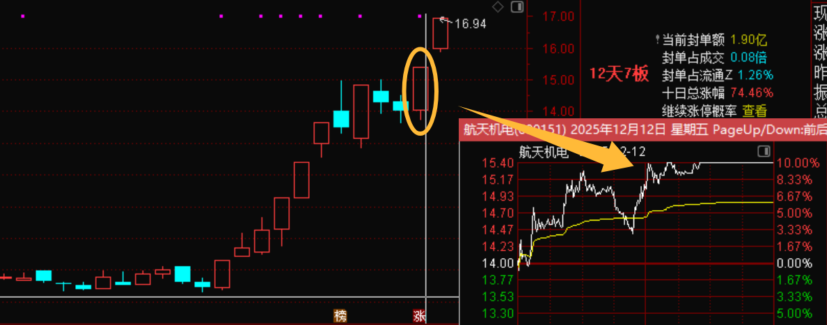 包括黄河路今天2个亿冲锋的另一支商业航天龙头,也是典型的中位票,又有SpaceX概念,还有情绪超预期结构,我就不贴图了,各位自行体会。