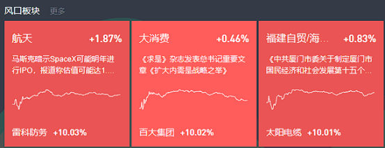今天依旧是目前市场延续性非常强的题材。消息面上SpaceX IPO官宣:SpaceX正式向员工通报2026年IPO计划,整体估值约8000亿美元。盘中,航天机电、航天电子,航天动力、航天发展,龙洲股份等均维持强劲走势,而华菱线缆、西测测试等个股同样后来居上表现亮眼。目前板块是低位补涨和高位抱团并行。部分前排和后排调整。板块对,个股不对,也要挨揍挨锤子,这是考验选股了。