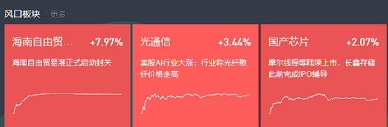 板块还是轮动,今天强的是海南、芯片、机器人,上周五没涨,这样也就是都是没有获利盘的板块。之前发文强调过了,指数涨就看科技板块共振:液冷,CPO,芯片等。