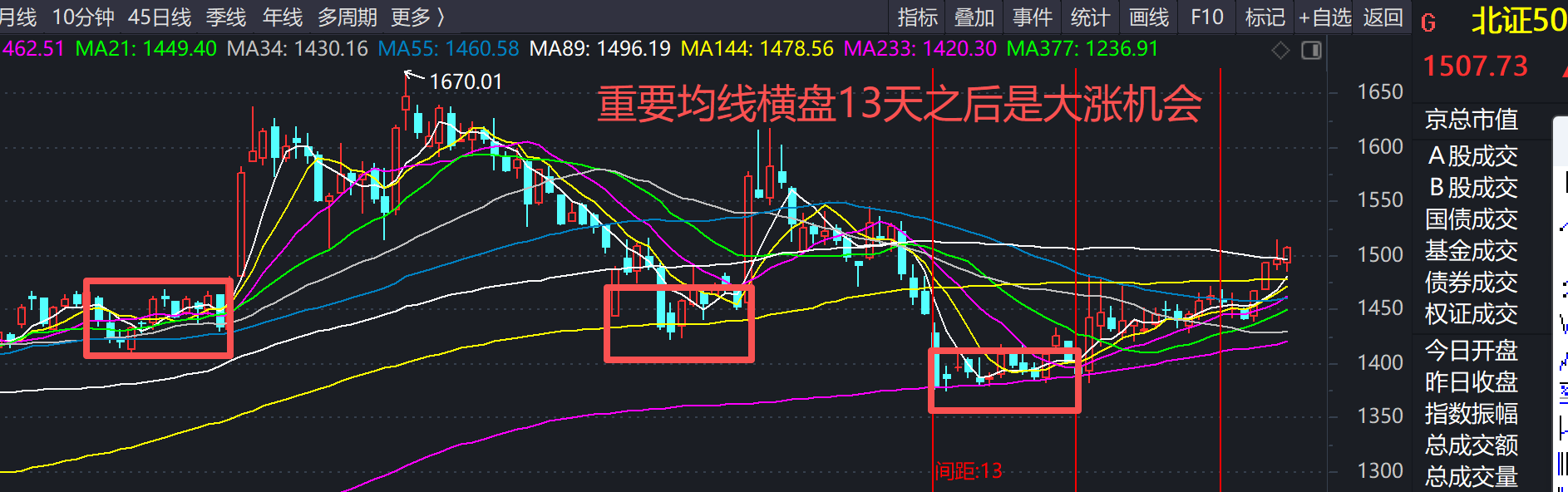另外,北证50的图形也给出一个高胜率范式:重要均线(144日均线或者233日均线)横盘13天不破位,往往对应后续的上攻窗口。这类形态在有色与科技硬件里值得天友们重点筛选:止损清晰(破位就退出),空间往往更充足。