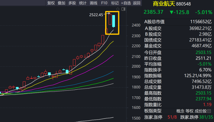 这是商业航天的走势,你觉得还能涨吗?从K线形态来说属于典型的倾盆大雨走势,而且直接回补下方缺口,说它是退潮也不为过,不过商业航天属于这轮情绪周期的主线题材,就像猫有九条命,只此一次恐怕还不能彻底终结,所以我更愿意将这次商业航天的调整看做是去伪存真的过程,特别是对于今天走穿越的活口而言,或许里面就有下一波上涨的龙头品种,此时建议继续用两头堵的方式关注其回流机会,一头是逆势抗跌并且距离200%异动较远的核心标的,另一头是有真实业绩和技术支撑的低位补涨,当然在此期间还要关注航发的负反馈力度,它能及时止跌才能促使题材尽快回流。