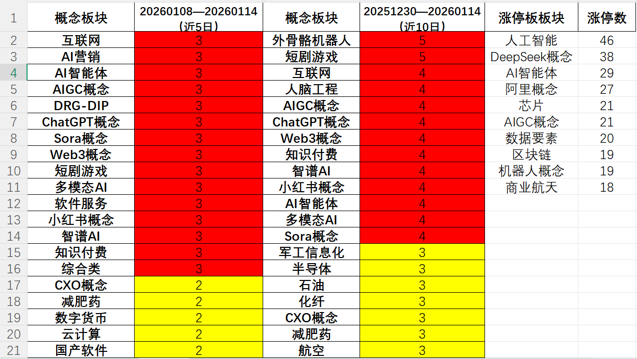 但从2025年3月20日我们转移到防御股之后,科技应用与软件逐步淡出《赢家笔记》,因此在随后十个月里,我们始终保持克制:不主张做科技软件应用,相关方向(国资云、远程办公、知识付费、云计算、数据确权等)即便有脉冲,也多视为短节奏轮动,而非可持续主线。直到2026年1月12日,大盘运行到五条趋势线交汇的4156、4173以及4186一带,科技应用与软件重新回到《赢家笔记》前排:人工智能(Sora、ChatGPT)、软件服务、国产软件、智谱AI、知识付费、AIGC、多模态AI、AI智能体、算力、远程办公、数据确权等密集出现——等了十个月,科技应用与软件终于再次具备“可参与的主线地位”。