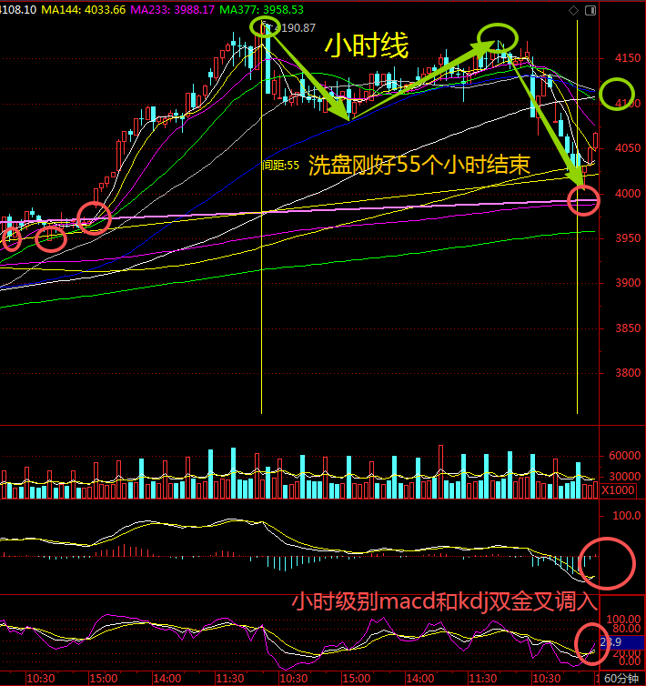 这一轮洗盘到黄金分割4040和4018附近就是左侧调入点,2月3日11:21时间到了也是左侧调入点。11:28的时候突破144分钟均线4026并回踩确认是第一个右侧调入点。之后站上4038形成一个小时五微浪上升结构是第二个右侧调入点。2月3日14:00的时候,小时级别macd与KDJ双金叉是第三个调入点。2月4日立春节气站稳15分钟K线图144线4113是右侧调入点。具体个股,2月3日11:21附近分享了,也点评了老天友交流的股票。