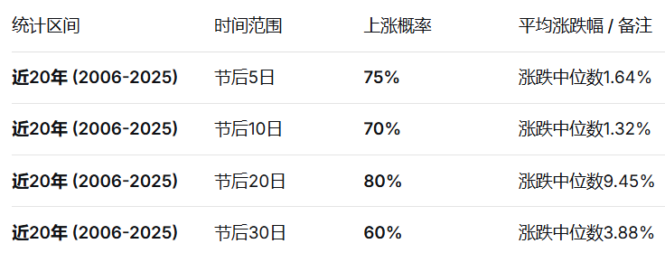 那明天的A股会走出开门红吗?先看组数据,近20年节后5天的上涨概率是75%,节后20天的上涨概率更是高达80%,而且上涨中位数都不低,所以排除外力影响,节后持股获胜的概率还是挺大的,何况年前该走的资金都走了,节后基本上会有波回流,加上去年市场已经形成了上升趋势,这种情况下更容易获得做多共识,因此对于节后的走势本人还是持乐观态度的,不管怎么说3月5日两会即将召开,市场不缺引导预期的东西。