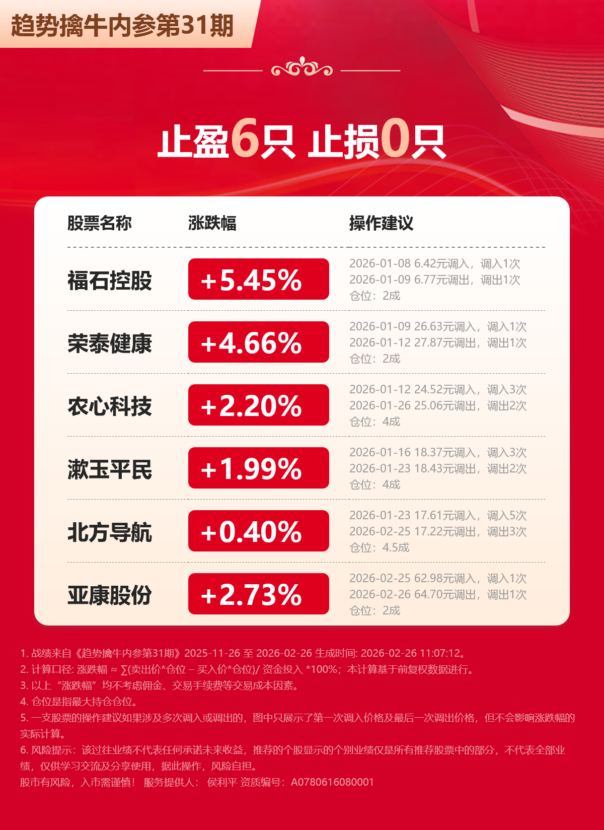 上期擒牛业绩如下: