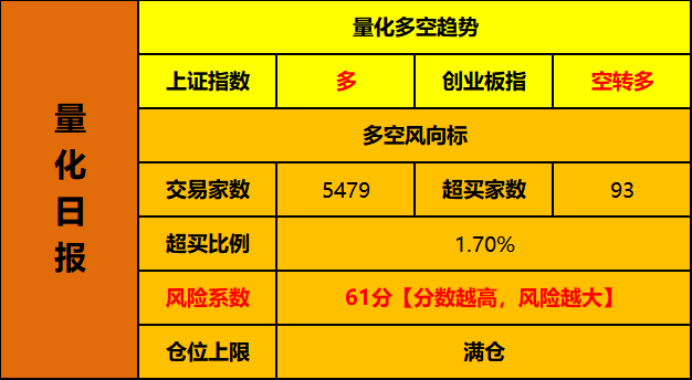 哦对了,创业板的量化趋势转多,这也是一个积极的信号。