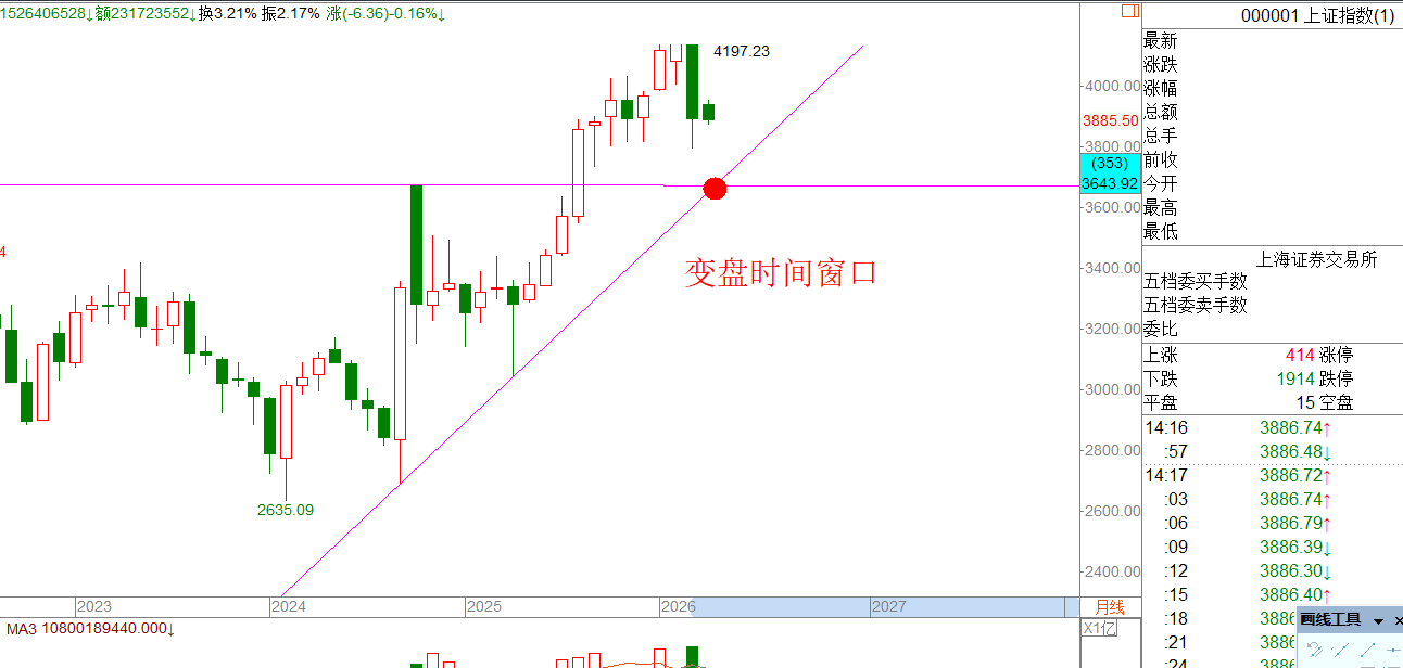 大趋势我还是偏向4197不是顶,今年可以再创新高。做交易最怕的是什么:看错趋势,如果趋势向上,被套了还有解套的机会,可以逢低加仓,等待上涨;如果趋势看错了,那就是深套或长时间深套。