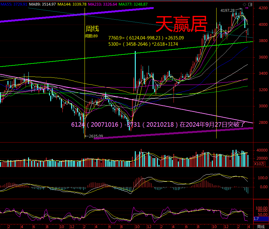 在《天赢居2026年投资计划志同道合》中已经明确提出:“春分前后在众多变盘点共振之后,转折向下,洗盘到2026/4/28的时候三个变盘点共振,恰好也是2024年10月8日开始的377天,踩箱底之后,新一轮的投资机会又来了。”结合三月份的运行情况来看,主跌空间基本已经完成,四月份大概率以低位震荡、反复探底、筑底蓄势为主。因此,四月份的主要节奏可以概括为:探底—筑底—蓄势—反攻。从时间周期看,重点关注两个关键节点:4月21日 与 4月28日;从空间位置看,重点关注绿色中轴所在的趋势线密集区 3731—3755 一带。