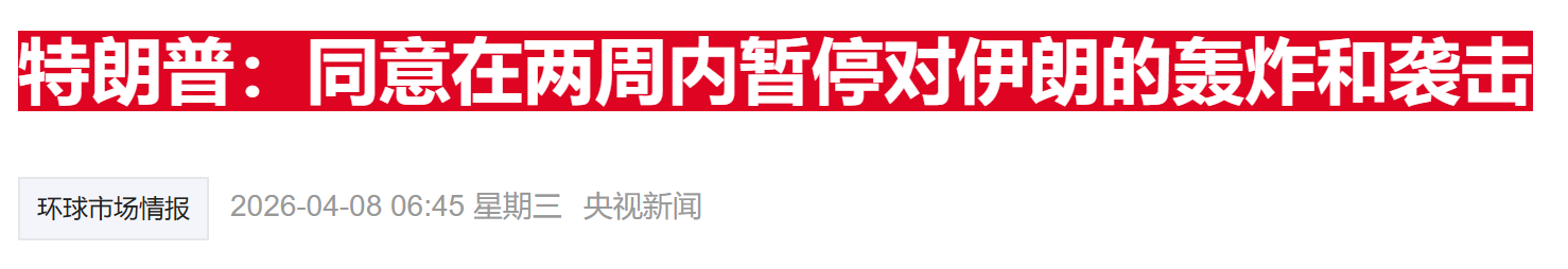 早上开盘前,全市场的心都提到了嗓子眼。特老头给伊下的最后通牒,截止时间就是今天早8点。那架势,仿佛下一秒就要“整个文明消亡”。结果呢?就在大家以为要见证历史的时候,特老头……怂了!同意停火两周。