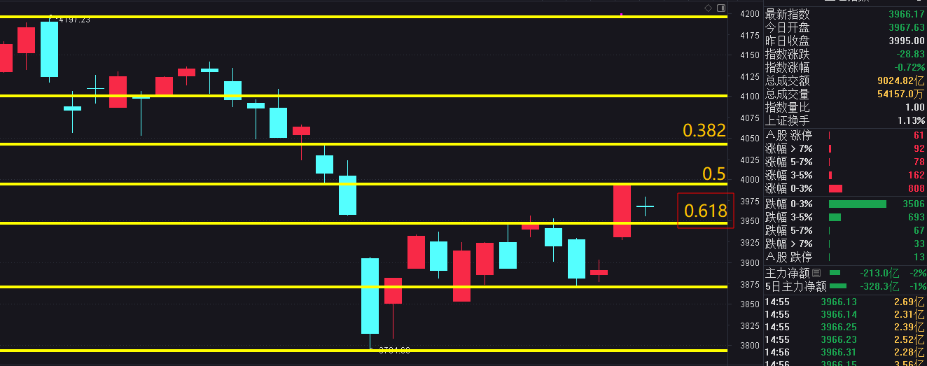 这么说显得很马后炮,但至少能让大家在情绪上更容易接受,而且今天是缩量跌,没有踩踏,也没有恐慌,相当于是在有序释放抛压,没啥问题,从结构上看,大盘刚刚来到4197-3794的50%分位,上方目标是0.382的黄金分割位,大概在4050附近。