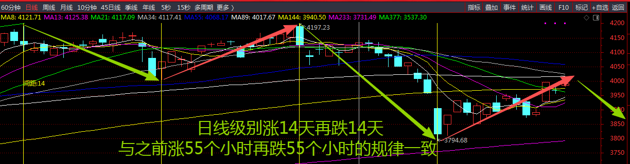 按照《天赢居:用时间来确定买点》“查看前一段熊市里最长的那个反弹波段耗费的时间,只要超过那个时间就意味着前一个熊市已经结束”,所以过去55天的最大反弹时间是14天时间,所以多涨两天或者站稳4018就结束1月14日以来的横盘箱体运动,但在没有出现这两件事情之前还是要预防涨满14个交易日再跌14个交易日的箱体内部节奏。由于通信设备第五次上榜《赢家笔记》,如果4月13日第六次上榜就会发出洗盘警报,而3月24日我们强调的通信设备和光通信是过去13天的领头羊,这会引起科技硬件的回落,所以倾向于原有箱体14天洗盘的节奏。
