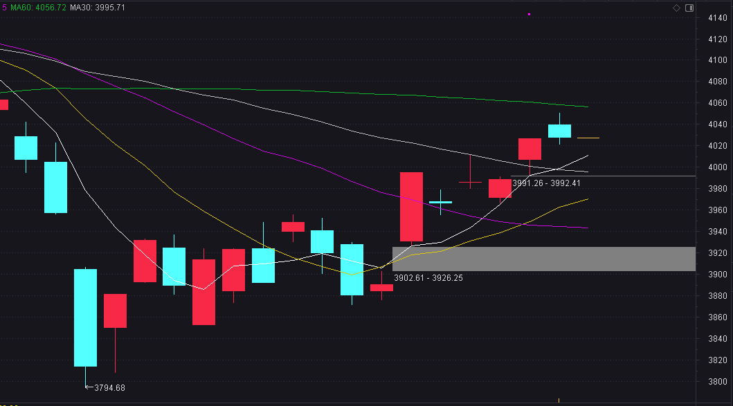 明天大盘的5日线会上移到4011附近,如果日内完成下探回踩并且企稳,就有可能是新的建仓机会,各位可以据此制定交易计划。