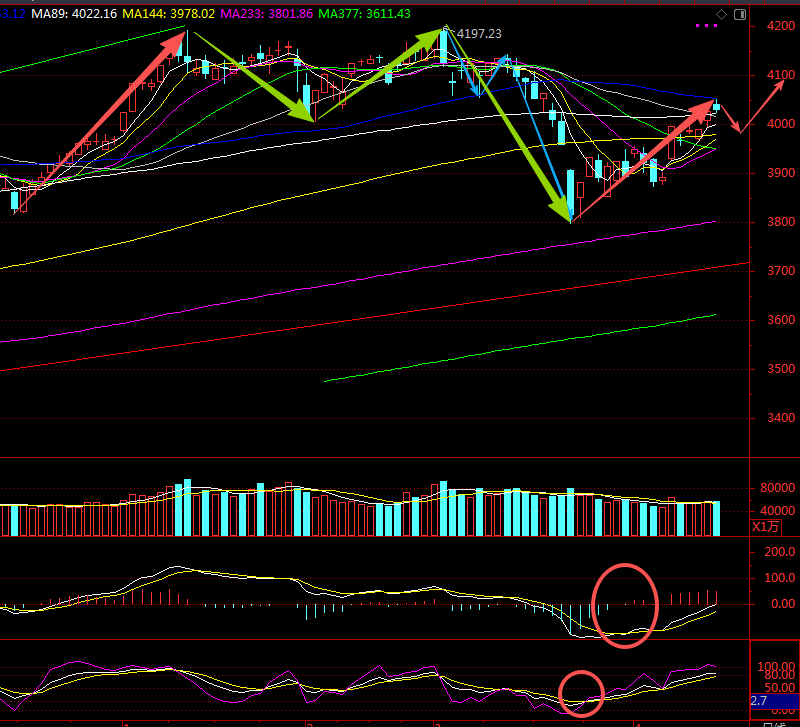 按照天赢居的趋势判断规则,大盘在144日均线3978之上日线级别趋势良好;在144小时均线4022之上,小时级别趋势良好,或者尚未变坏;在30分钟K线图144线3936之上保持良好,只是遇阻377T均线4042处于回踩之中;在15分钟K线图144线与377线交点3965之上保持良好趋势;在5分钟K线图144线4008之上,有回踩的需求,但线上就是趋势良好。所以目前只看到回踩4018或者4008的小级别洗盘,其他周期都是保持良好的主升浪状态。而且,只要在4008或者4018之上保持八小时就完成突破之后的回踩确认,前期的反弹性质也升级为反转,市场重新回到主升浪上涨周期当中。只不过目前刚刚突破,还处于上涨的初期阶段,通常情况下,一浪上涨到阻力位之后有各个级别的二浪回踩,然后逐级递增到三浪上涨,所以现阶段会比较震荡和反复。