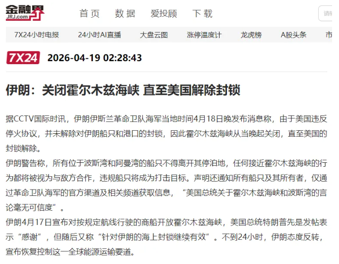 周末的消息面真的是一波三折!周五晚间美股三大指数继续大涨!A50也上涨了0.63%!源于消息面霍尔木兹海峡的完全开放!但是,就在昨天晚间,伊朗又宣布了关闭霍尔木兹海峡 直至美国解除封锁!