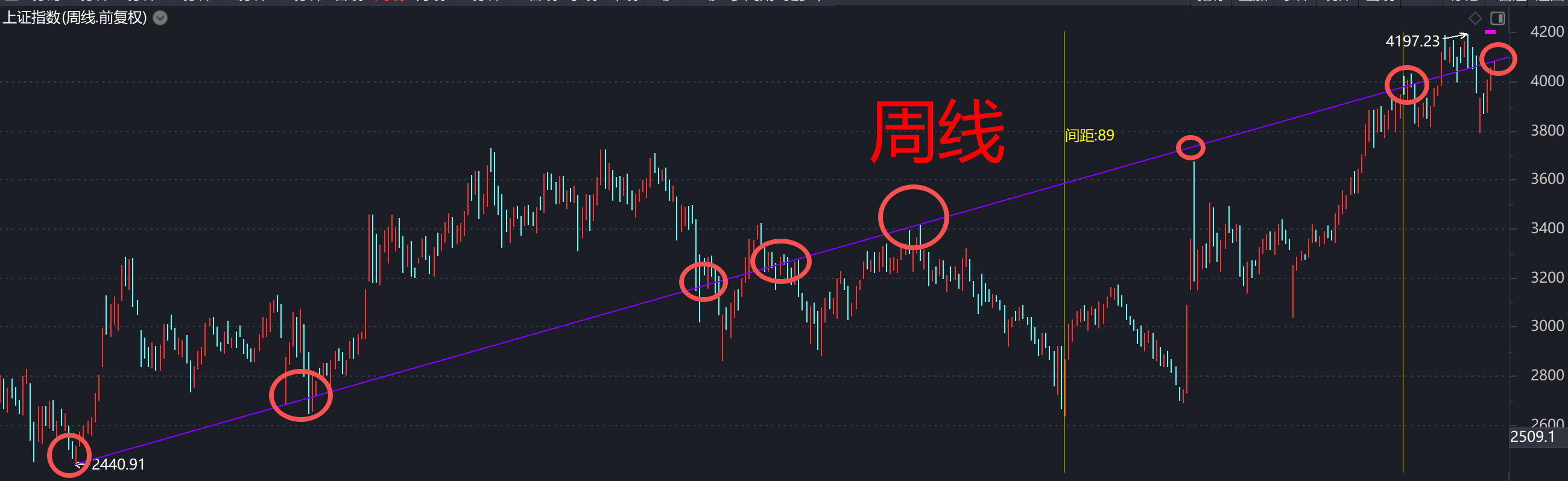 牛市震荡上行中的进攻阶段仍在延续,只是日线一浪上涨到21天附近的谷雨时间之窗遇阻趋势线 2440(20190104)-3418(20230509) 所在的4083阻力区,再次说明趋势线的前瞻性和约束力,但站不稳4083就将进入高位整固与日线二浪小洗盘阶段。