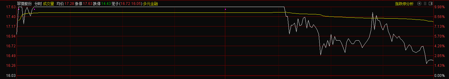 翠微股份下午还是没有封住涨停,今天这个走势就偏弱了,对情绪的打击很大。但是它的行情是不是结束了?我认为没有,资金在二板的时候有分歧很正常, 有时甚至就是大资金故意为之,让不坚定的资金离场,这样它才好做更大的行情。但是这种通常第二天就会继续拉升,所以明天开盘会非常关键,它必须出现情绪超预期结构,激发出资金的情绪合力,才能推动股价继续上涨。