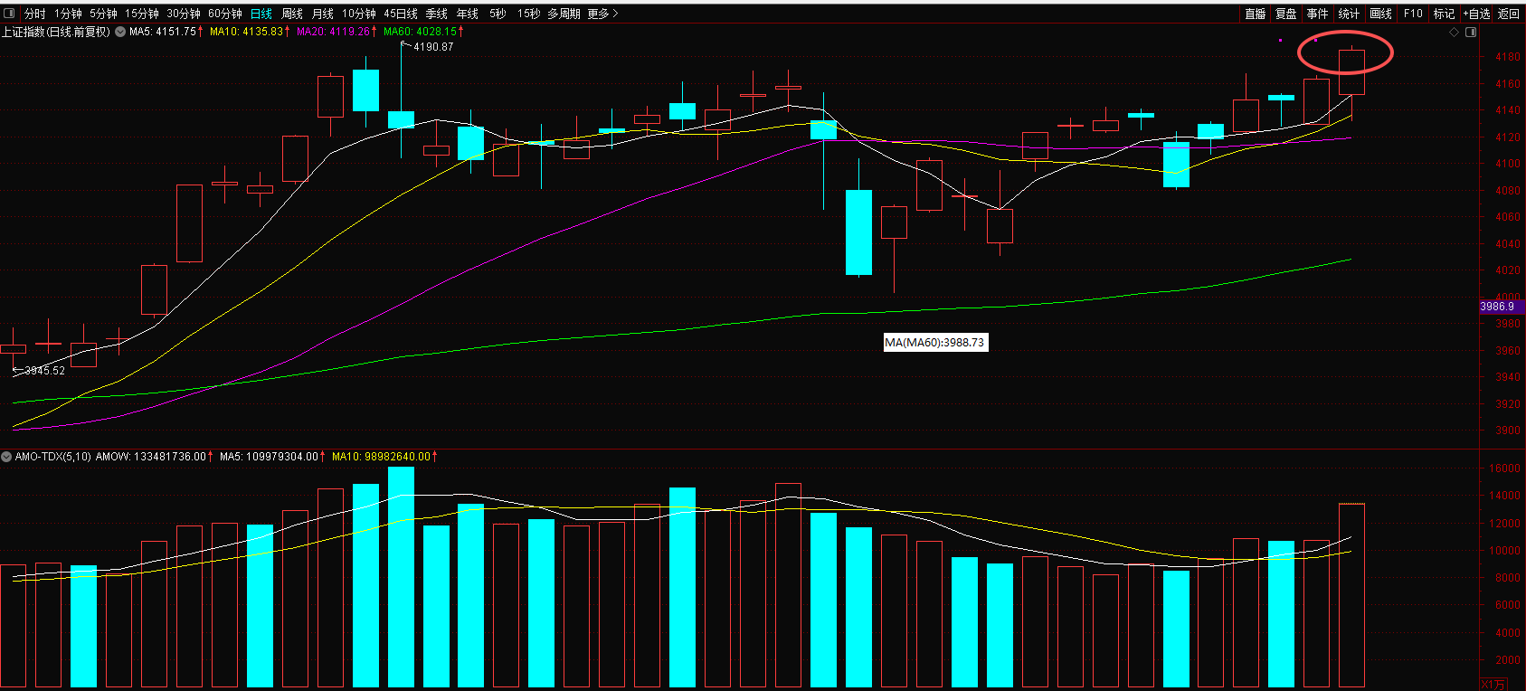 剑指4190,今天市场杀疯了。全天成交超过3万亿,但是今天大部分人是亏钱的。两市就1100只个股上涨,4000+个股下跌。但是随着指数突破新高,个股接下来肯定会跟着回归的,所以大家要做好准备,尤其是石油板块分歧后,资金分流后的机会。