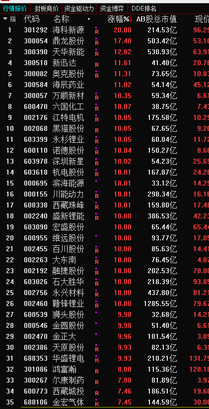 锂电池果然30+涨停,连赣锋锂业这个浓眉大眼的家伙都涨停了。这种大市值龙头都能被资金冲涨停, 而且还是在今天缩量的环境下,可想而知资金有多凶猛了。而且这个方向才刚刚开始,下周一应该会有分歧,而接下来能顶住分歧的龙头有可能会晋级成为妖股。