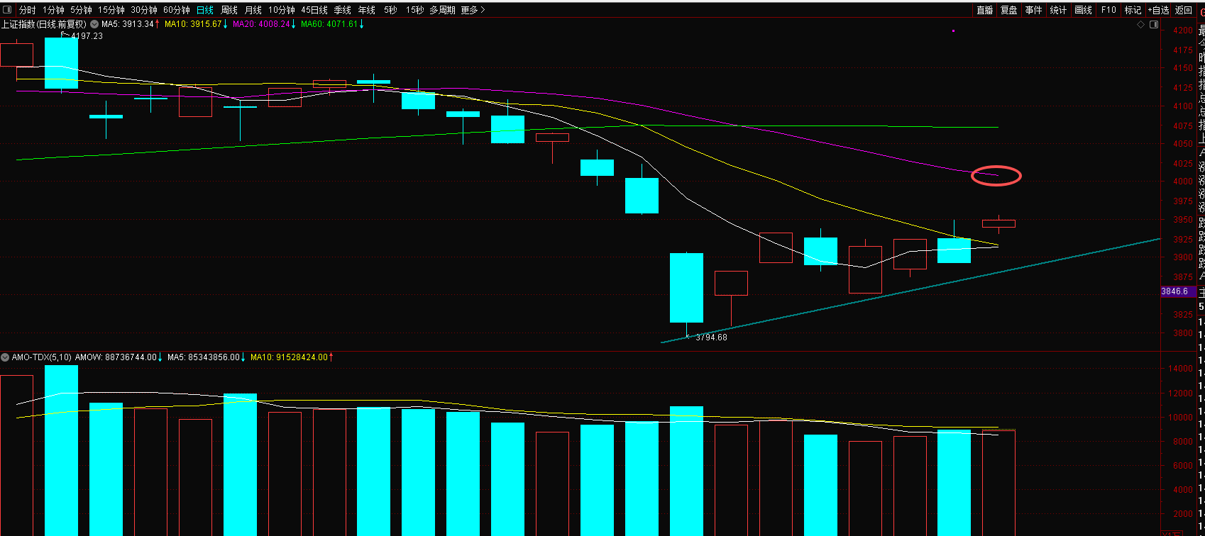 不过整体来说,今天指数完成了对昨天下跌的反包,扭转了短线弱势的情绪,并且打开了继续反弹的空间,那么明后天继续反弹就是大概率的事。下一个目标就是20日线,这里才会是这波超跌反弹的第一个强压力位。现在还有空间,明后天我们还是继续看多做多为主,继续去寻找新的建仓机会。
